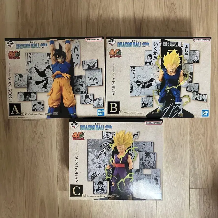 제일복권 DRAGON BALL 40th ~그之二~ 드래곤볼 피규어 A상 40th Anniversary Figure ~손오공~ B상 40th Anniversary Figure ~베지터~ C상 40th Anniversary Figure ~손오반~ 피규어 3체 매장에 있던 상품입니다. 외부 박스의 초기 상처까지 신경 쓰시는 분은 구매를 삼가해 주십시오. 상자에 넣어 발송 예정입니다.