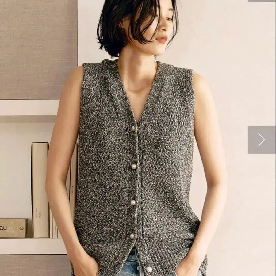 버튼이 달린 슬리브리스 니트 베스트입니다. 그레이 색상의 심플한 디자인으로 캐주얼한 스타일에 최적입니다.