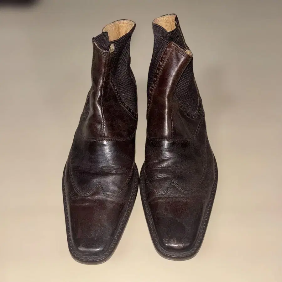 멘즈 비기 천연 가죽 사이드 고어 부츠 윙팁 브라운