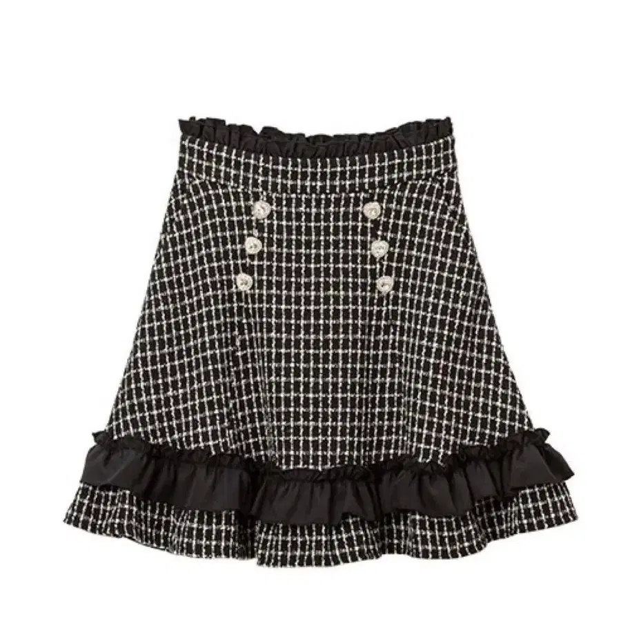 DearMyWhip 하트 비쥬 프릴 트위드 스커트 5L 블랙