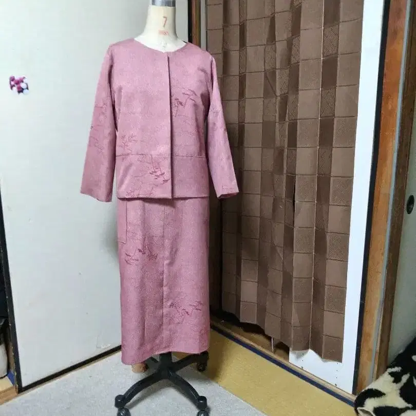 자수가 들어간 핑크색 셋업, 긴팔 자켓과 A라인 원피스의 조합. - 색상: 핑크 - 스타일: 셋업 - 디자인: 자수 - 소매: 긴팔 - 스커트 길이: 무릎 아래 - 특징: 자켓과 원피스 세트, 포켓 있음 사이즈 기장 110 가슴 너비 60 원피스는 프렌치 소매 상의 기장 54 (전신으로 기장 추가) 전체 안감 있음 소매 길이 48