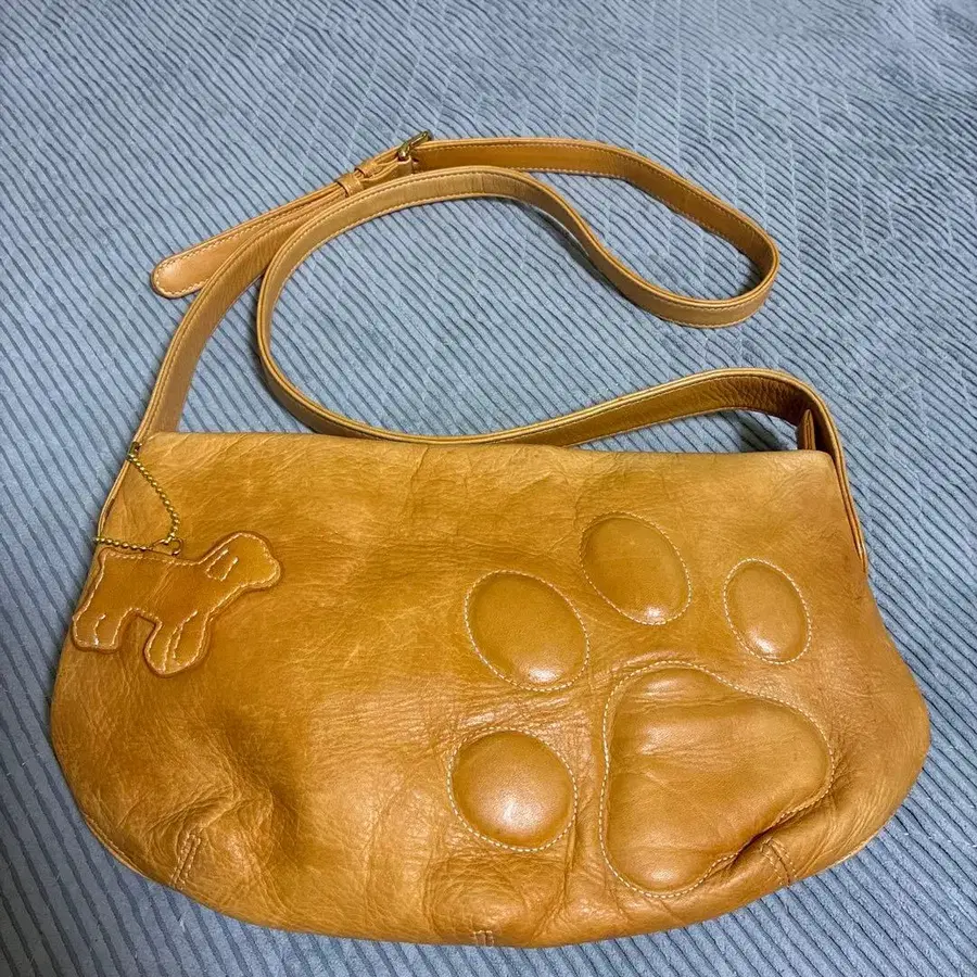 키타무라 개 모티브 소가죽 숄더백, 카멜색