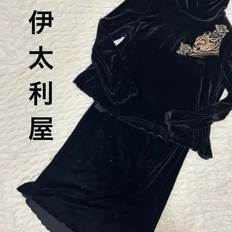 이타리야 벨로아 블랙 벨벳 터틀넥 스커트 셋업