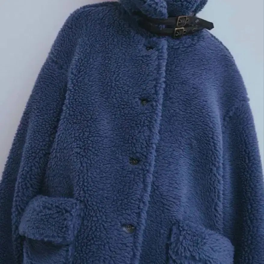 [ 시착만 한 상품 ] Andequal 스탠드 넥 보아 코트 블루
