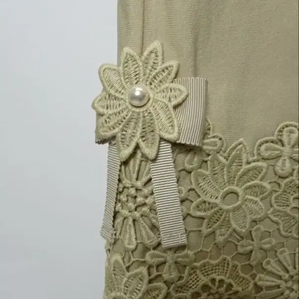 [ 새상품 ] 슈퍼뷰티 밑단 레이스 x 리본 사용 속기모 팬츠 44