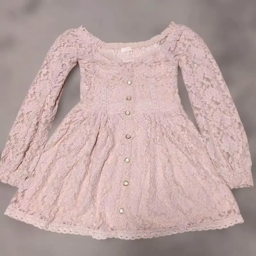 레어 LIZ LISA 라이트 핑크 전체 레이스 미니 원피스 긴팔
