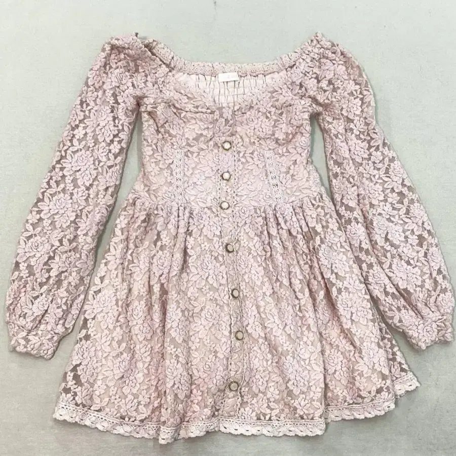 레어 LIZ LISA 라이트 핑크 전체 레이스 미니 원피스 긴팔