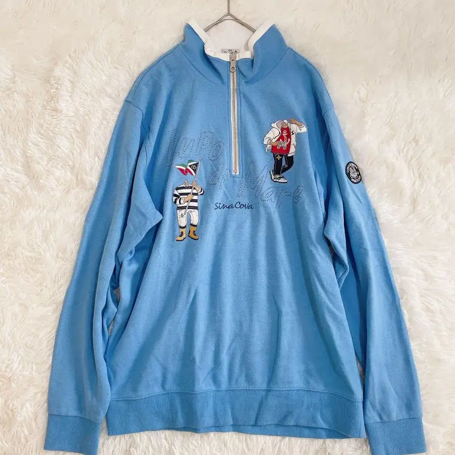 SINA COVA 하프 지퍼 니트 선장 자수 디자인 와펜 L 사이즈