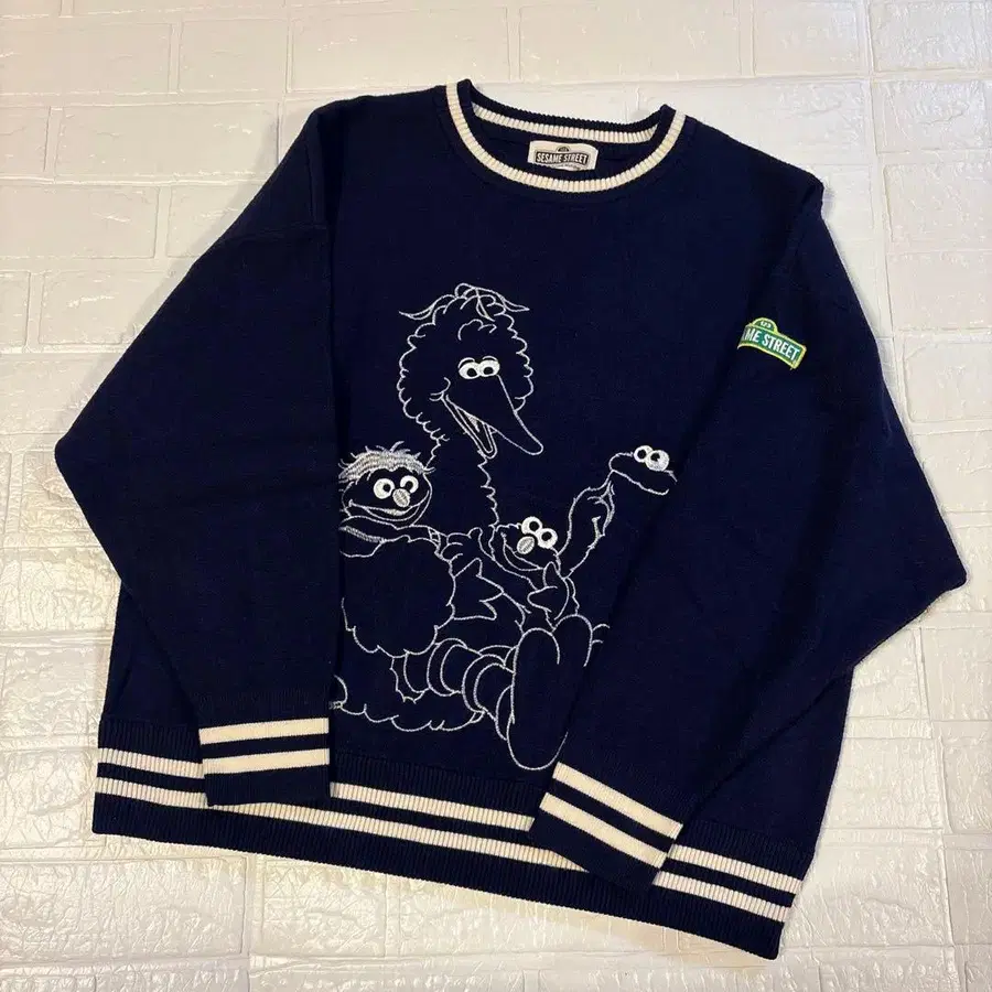 네이비 SESAME STREET 트레이닝복, 캐릭터 자수 포함.