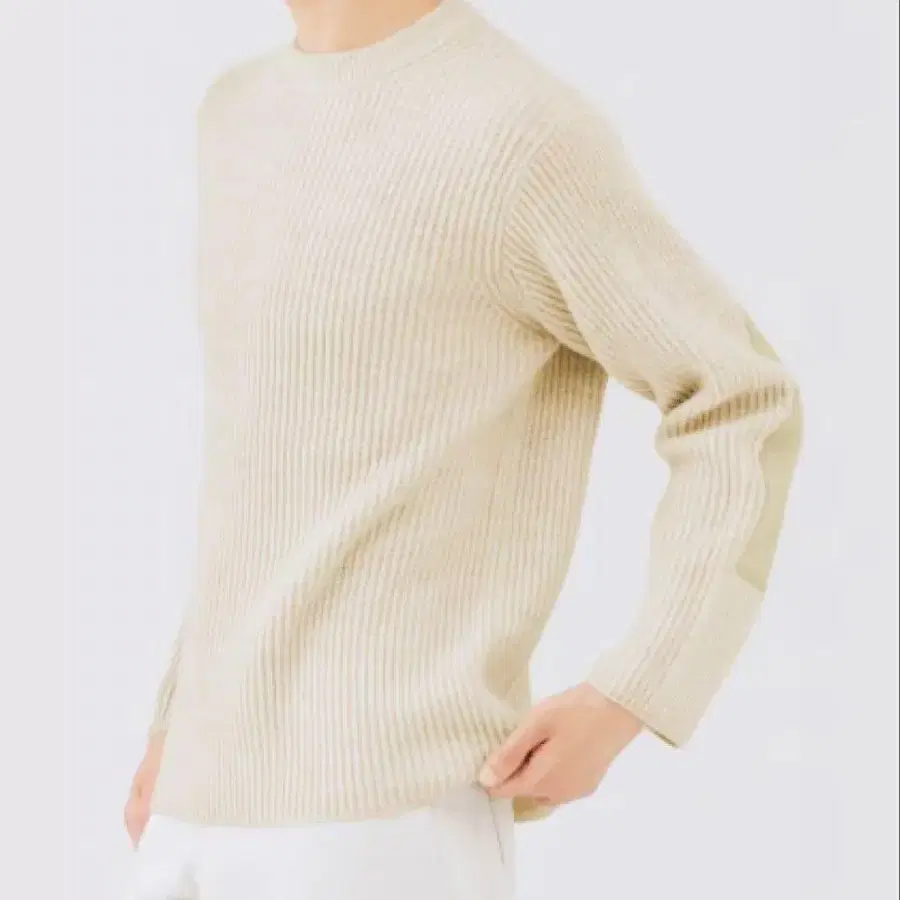 메리노울 하찌 엘보 패치 크루넥 스웨터