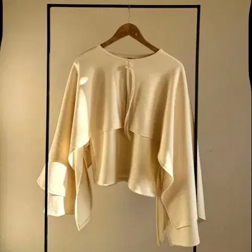 플레어 슬리브 디자인의 크림색 상의, 캐주얼하고 페미닌한 스타일. 한 번 착용 후 자택 보관했습니다. - 색상: 크림색 - 디자인: 플레어 슬리브 - 스타일: 캐주얼, 페미닌 - 컬렉션명: sorina collection 방문해 주셔서 감사합니다. 사이즈 - FREE SIZE
