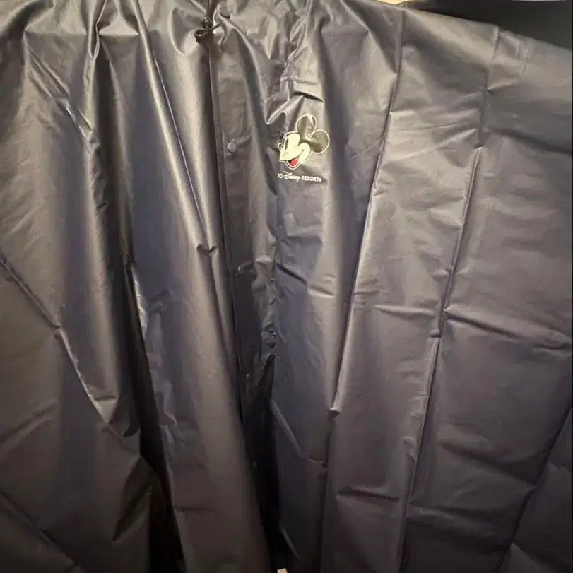 미키마우스 디자인이 특징인 네이비 색상의 후드 부착 레인코트. 한 번 착용한 후 오랫동안 보관해 왔으므로, 이를 이해해 주시는 분께 부탁드립니다.