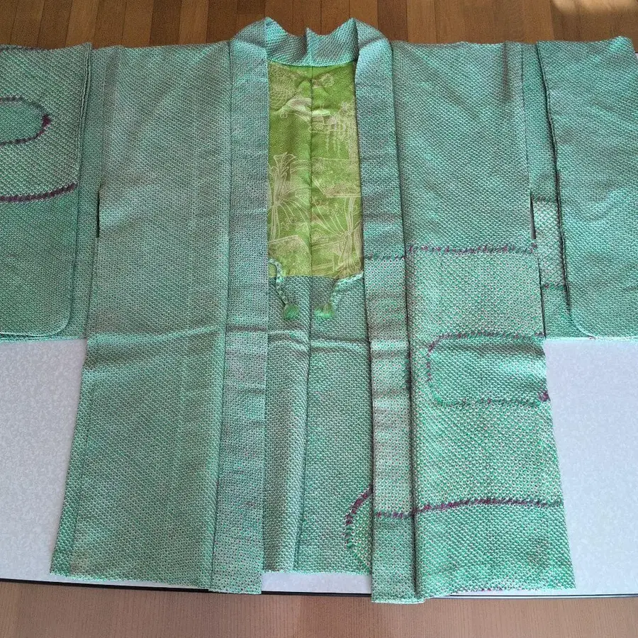 그린 컬러의 총 시보리 겉옷, 꽃무늬 안감 - 색상: 그린 컬러 - 디자인: 시보리 패턴, 꽃무늬 안감 - 스타일: 겉옷 기장(등에서부터) 69cm 어깨 너비 30.5cm 소매 너비 31cm 소매 길이 45cm 미사용 새상품인 총 시보리 패턴의 겉옷입니다. 색상은 3번째 사진의 색상이 가장 가깝습니다. 장기간 자택 보관이었으므로 이해해 주시는 분께 잘 부탁드립니다. 방문해 주셔서 감사합니다.