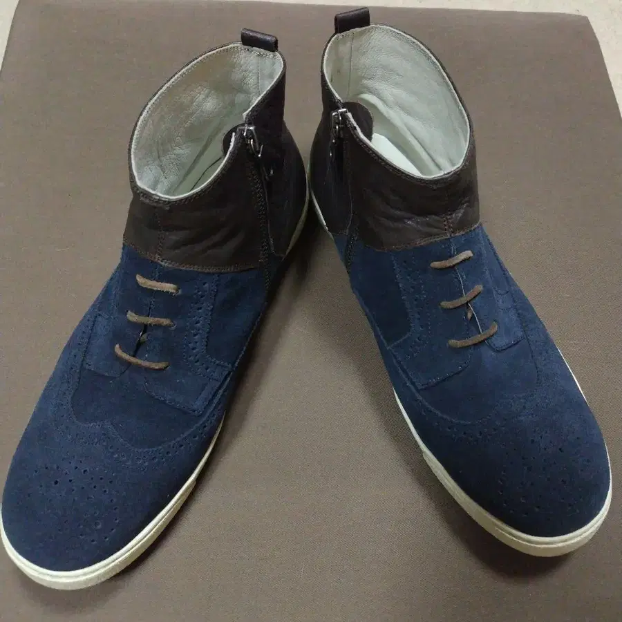 Ellelui의 하이컷 신발입니다. 발가락 부분이 네이비, 뒤꿈치 부분이 브라운의 바이컬러입니다. 중고품이지만 눈에 띄는 얼룩이나 모양이 망가짐은 없을 것 같습니다. 사진을 확인해 주세요. 사이즈 표기가 없었지만 평소 26.5cm를 착용하는 분에게 딱 맞는 정도였습니다. 에어캡으로 감싸서 포장합니다. 프로필 문을 반드시 읽어 주세요. 판매하고 싶기 때문에 가격 인하 요청 환영합니다(^-^) 이하 AI 작성 설명문입니다. 네이비와 브라운의 스웨이드와 가죽 하이컷 신발, 지퍼가 달려 있어 스타일리시합니다. - 색상: 네이비/브라운 - 소재: 스웨이드/가죽 - 디자인: 지퍼/레이스업 - 스타일: 하이컷 - 밑창: 러버 솔 방문해 주셔서 감사합니다.