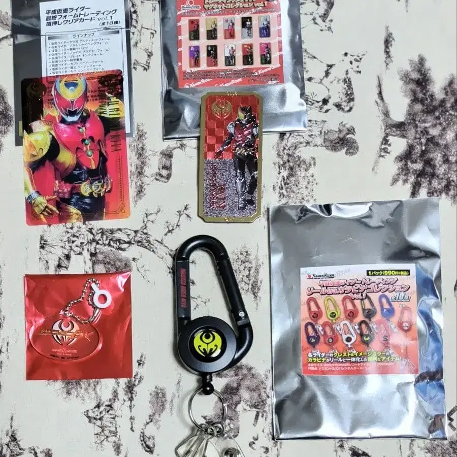 최종 폼 트레이딩 금박 클리어 카드, 메탈릭 마그넷 컬렉션, 낚시릴 달린 카라비너 컬렉션, 가면라이더 더 다이너 방문 특전 스트로우 참의 가면라이더 키바 4개 세트입니다.