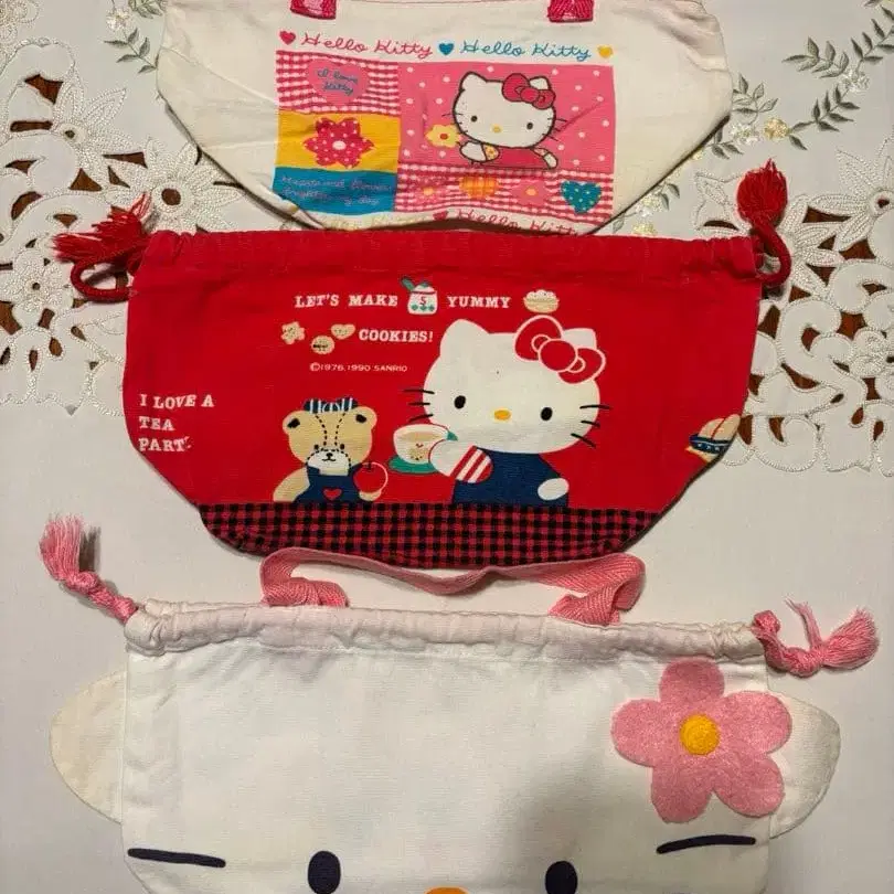 헬로키티의 귀여운 디자인 도시락 주머니 세트. - 디자인: 헬로키티 캐릭터 디자인 - 색상: 빨간색, 화이트, 핑크 - 소재: 패브릭 소재 방문해 주셔서 감사합니다. 성명 기재 있음, 매직으로 지우고 발송합니다. 화이트 키티는 귀가 약간 노랗게 변색되었습니다.
