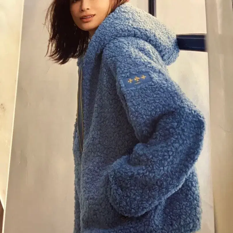 자동 번역되었어요. 원문보기부드러운 플리스 소재의 파란색 후드 부착 자켓.