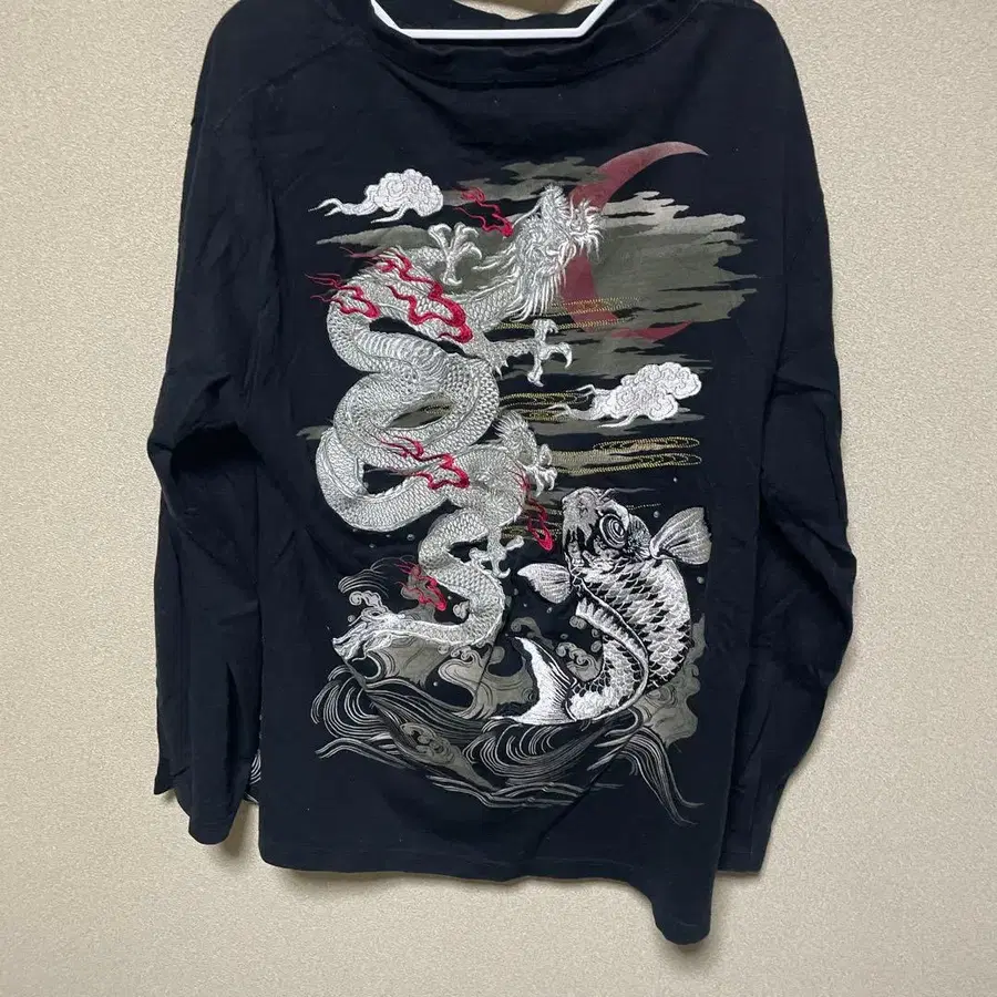 화조풍월 승룡과 등용문 자수 롱 T셔츠