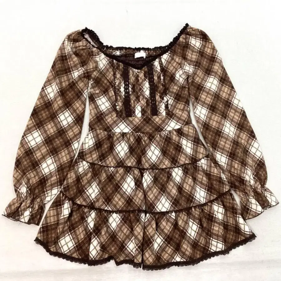 레어 LIZ LISA 기모 브라운 체크 무늬 긴팔 미니 원피스
