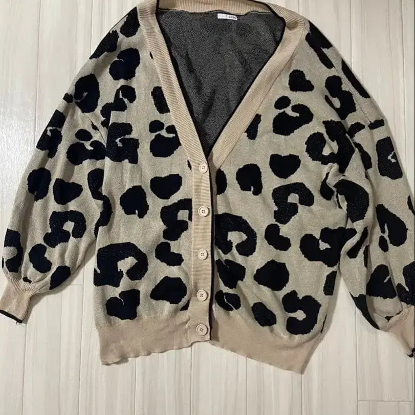 레오파드 라메 오버 가디건
