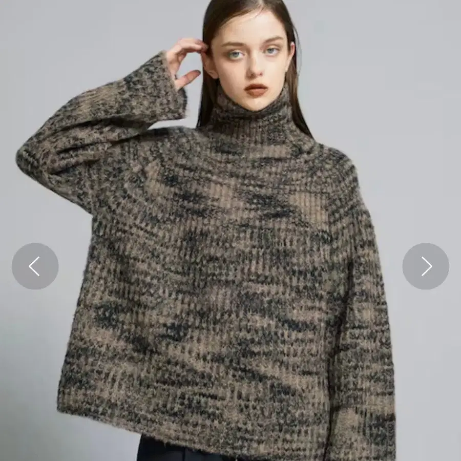 타이거 패턴의 메인 니트 ― Detail ― 언뜻 화려한 패턴이지만, 내추럴한 컬러링과 부드러운 소재감으로 부드러운 성인 느낌을 주는 니트입니다. 적당한 목 길이감은 소두 효과와 함께 얼굴 주변을 깔끔하게 보여주며, 넉넉한 실루엣이지만 가녀린 느낌을 줍니다. 자연스러운 색감으로 컬러, 실루엣에 상관없이 어떤 하의와도 잘 어울립니다. 밑단이 곧게 떨어지는 느낌이 있어, 턱 아웃으로도 균형감 있게 착용하실 수 있습니다. ― Fabric ― 내추럴 컬러의 알파카만을 사용하여, 지속 가능한 울과 리사이클 폴리에스테르를 혼방하여 디자인되었습니다.