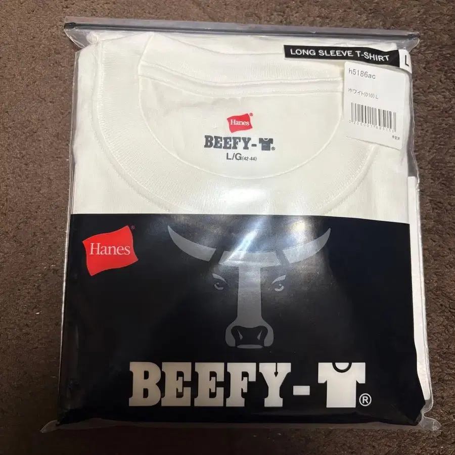 미사용 새상품 Hanes BEEFY 긴팔 T셔츠 L 화이트 롱T