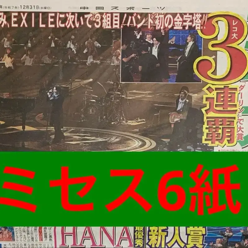 미세스 Mrs. 스포츠 신문 6개 신문 전체 그대로 12월 31일 장르 - 일본 국내 아티스트 일본 국내 아티스트 - Mrs. GREEN APPLE