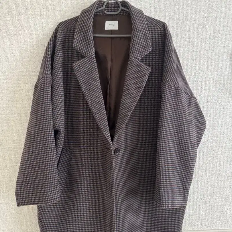 이오리 하운드투스 패턴 체크 패턴 빅 버튼 롱 코트 귀여운