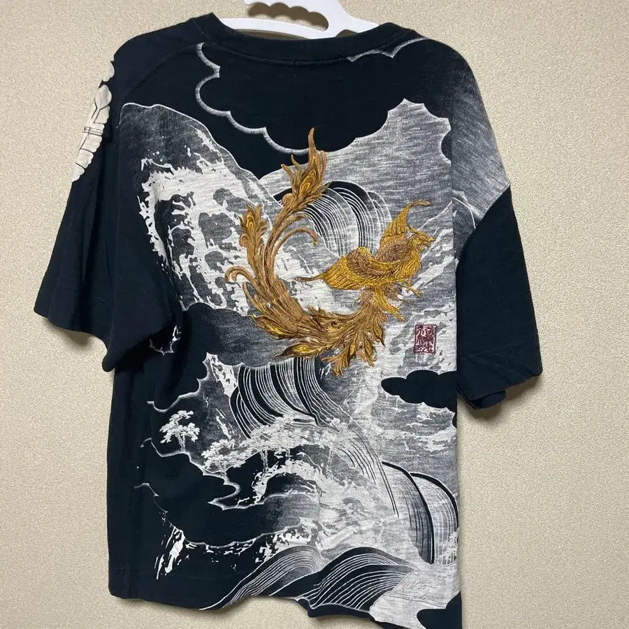 카라쿠리타마시 봉황 자수 반팔 티셔츠