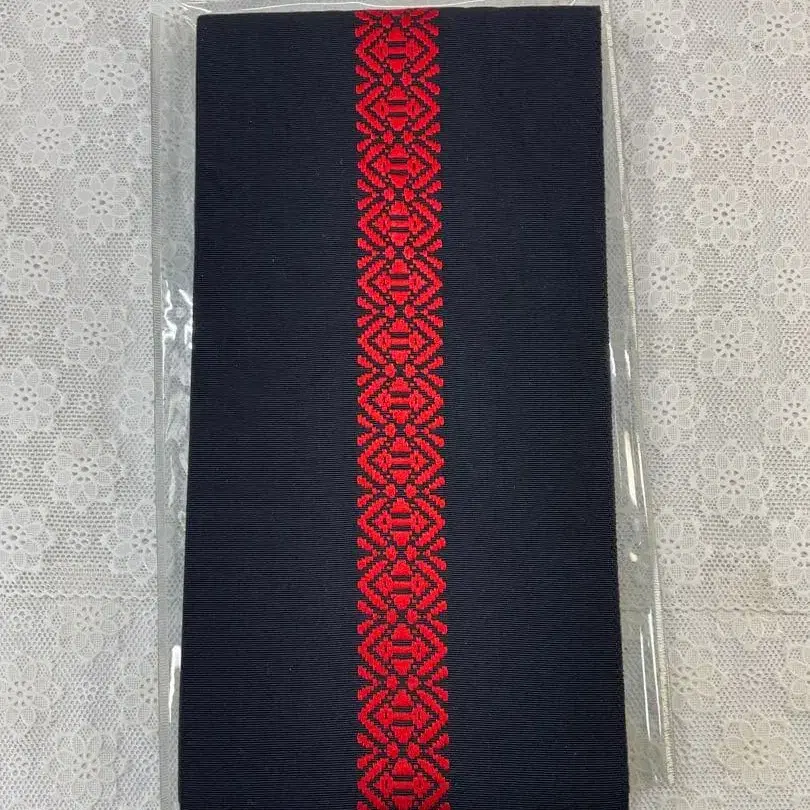 오비 네이비와 빨간색의 기하학 패턴 반폭 오비