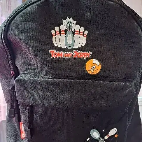 볼링 디자인의 블랙 백팩, 프론트 포켓 부착으로 편리합니다. 톰&제리 - 디자인: 볼링을 테마로 한 그래픽 - 색상: 블랙 - 포켓: 프론트 포켓 부착 - 스트랩: 조정 가능한 숄더 스트랩 - 사이즈: 표시 사이즈 방문해 주셔서 감사합니다. 택 포함 새상품 #톰&제리