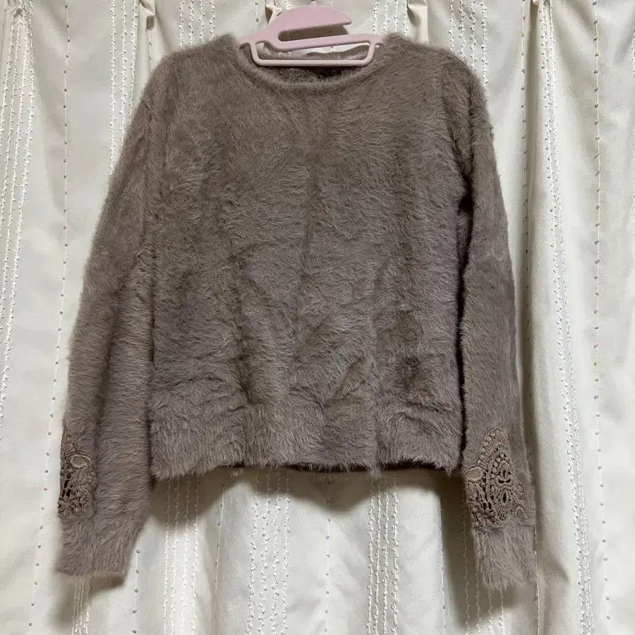 퍼 느낌 소재의 그레이 긴팔 니트, 레이스 장식 포함. - 색상: 그레이 - 디자인: 레이스 장식 포함 - 스타일: 긴팔 - 소재: 퍼 느낌 방문해 주셔서 감사합니다. 사이즈 - FREE SIZE 컬러 - 브라운 계열 넥 - 크루넥/U넥 계절 - 가을/겨울 얼룩, 찢김, 냄새 등 - 없음 가슴 너비 41cm 총길이 44cm