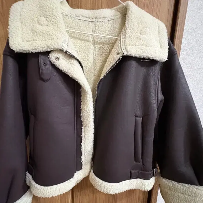 브라운 무스탕 코트 숏 기장 크롭 보아