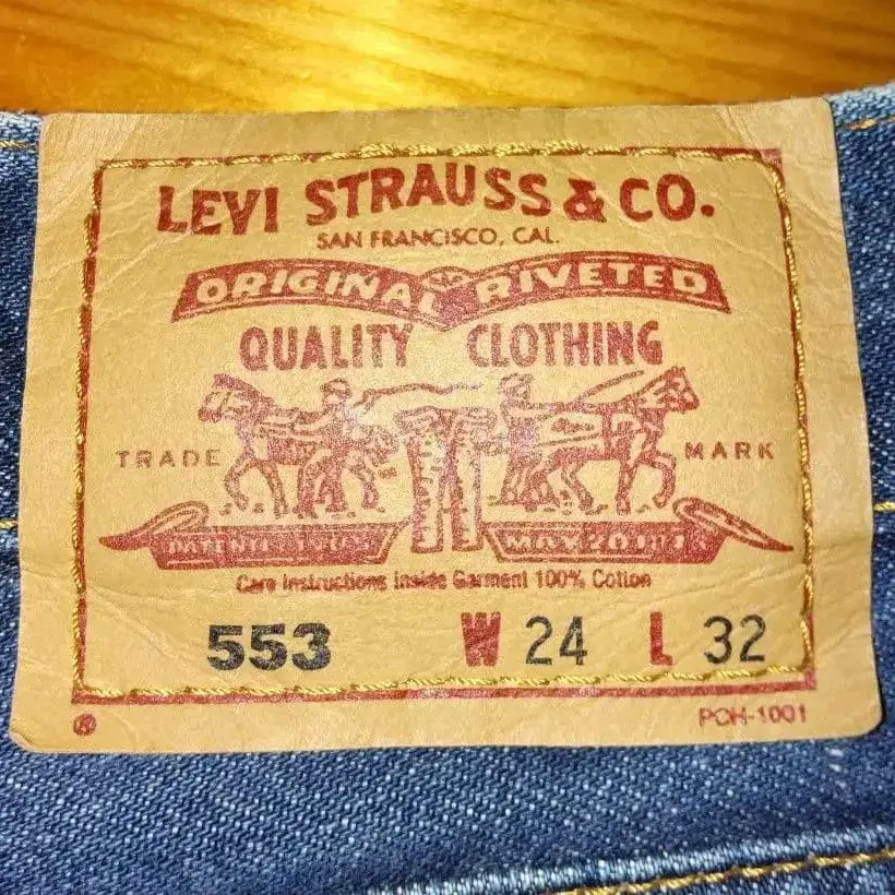 플레어 디자인의 블루 데님, 사이즈 W24 L32.