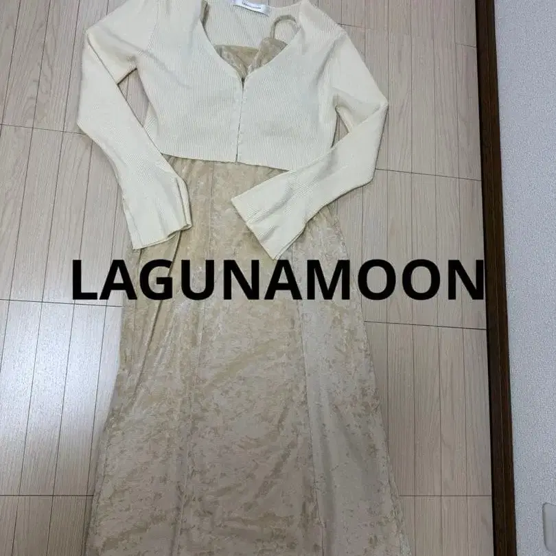 머큐리 듀오 가디건 라이크 니트 도킹 원피스 베이지