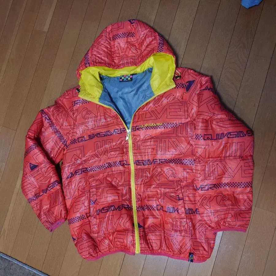 퀵실버 오렌지 그래픽 프린트 다운 자켓