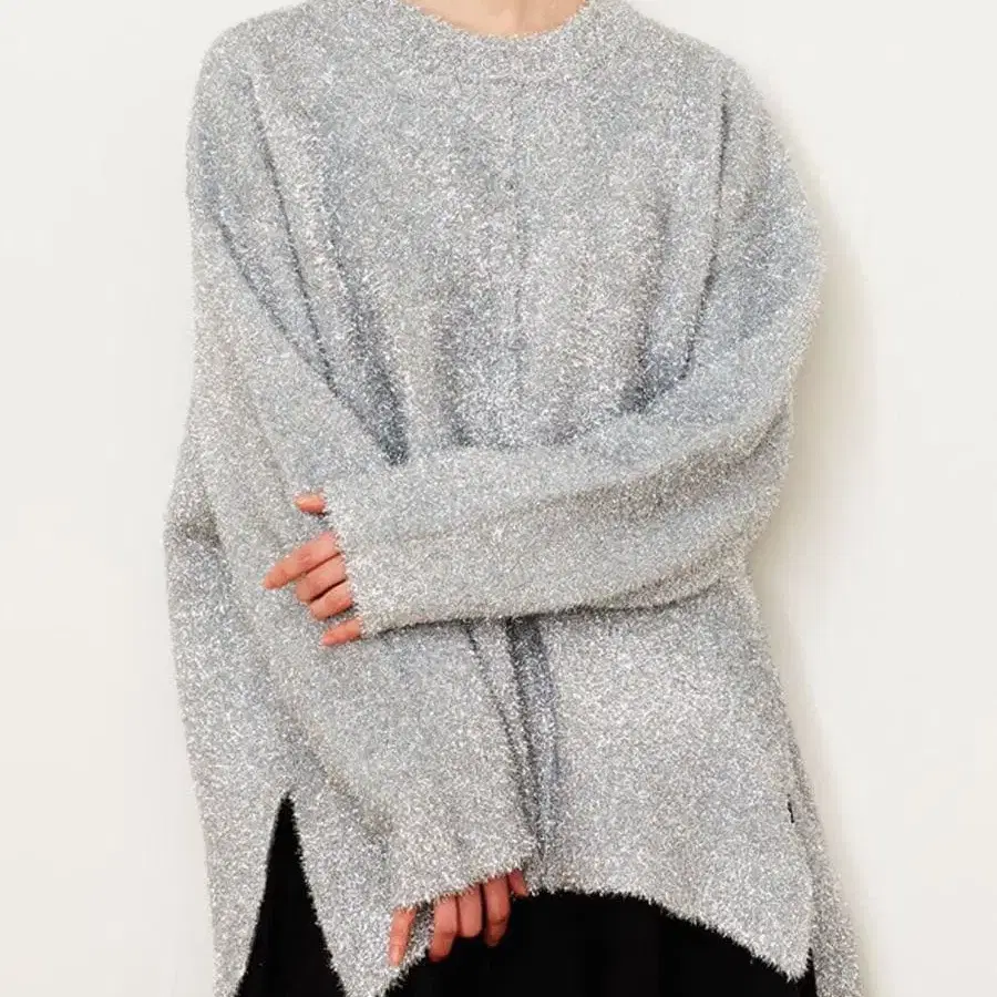 오버 사이즈 니트, 사이드 슬릿 포함. 메탈릭 샤기 풀오버. - 브랜드: venit - 색상: 실버 - 소재: 팬시얀 - 디자인: 라운드넥 - 스타일: 오버 사이즈 - 특징: 사이드 슬릿 사이즈는 이미지를 확인해 주세요. 방문해 주셔서 감사합니다. 생각했던 이미지와 달라서 판매합니다. 오늘, 내일만 판매합니다. 할인 상담은 유연하게 받겠습니다.