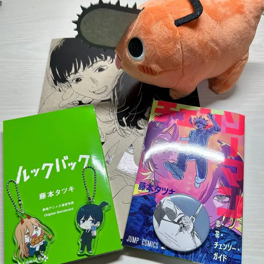 포치타 봉제 인형 파워 아키 스트랩 캔뱃지 영화 룩백 체인소 맨 후지모토 타츠키 극장판 혜택 팜플렛