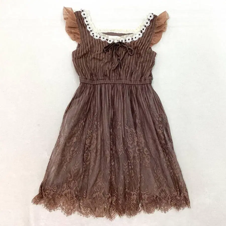 프릴 소매와 레이스 장식이 특징인 브라운 슬리브리스 원피스. - 브랜드: LIZ LISA - 색상: 브라운 - 디자인: 레이스 장식 슬리브리스 - 특징: 프릴 소매, 리본 포함 - 소재: 스트라이프 무늬 원단 방문해 주셔서 감사합니다.