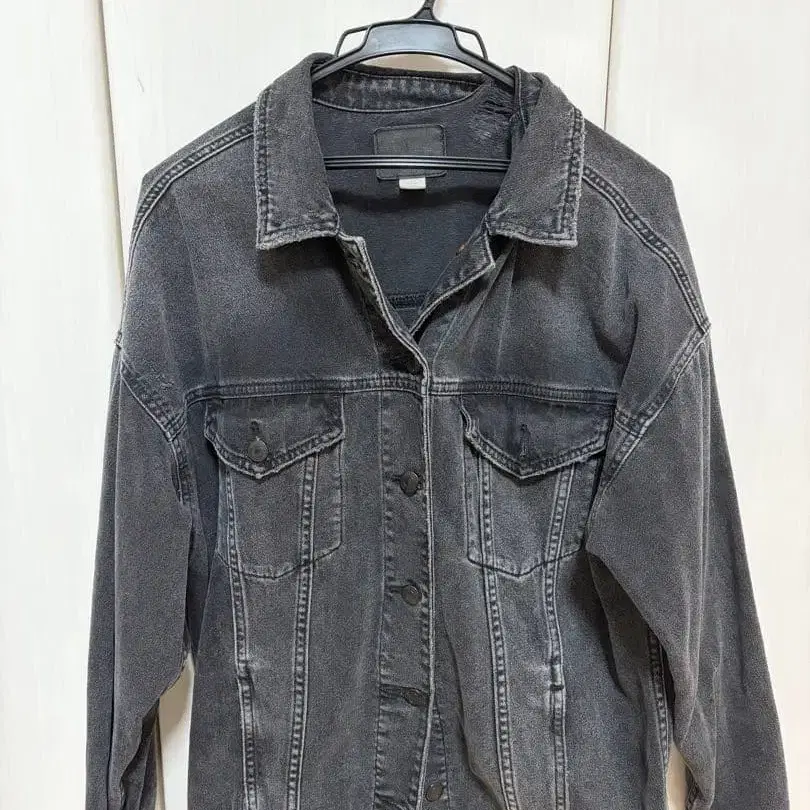 일반적인 데님 자켓에 비해 원단감이 부드러워 착용하기 좋습니다! 160cm 여성 (보통 체형) 착용 시 엉덩이가 반쯤 가려지는 기장입니다!