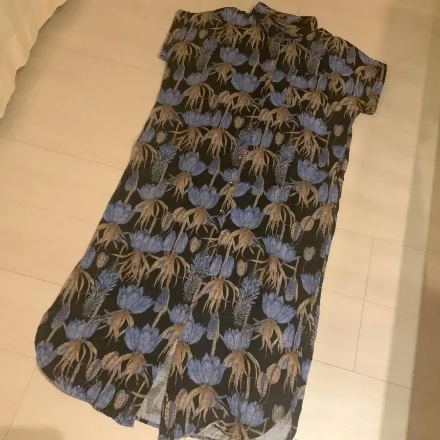 인도 면 mulumulu antiqua 꽃무늬 셔츠 원피스 네이비