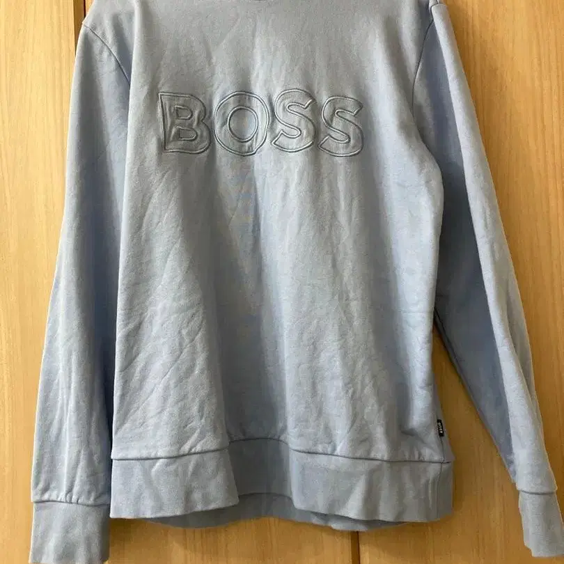 BOSS의 로고 자수가 들어간 라이트 블루 트레이닝복. - 브랜드: BOSS - 색상: 라이트 블루 - 디자인: 로고 자수 - 데미지: 눈에 띄지 않을 정도지만 약간 옅어진 부분 있음, 주름 있음. 방문해 주셔서 감사합니다. 사이즈 - M 어깨 너비 46cm 가슴 너비 49.5cm 기장 68cm 약간의 오차는 양해 부탁드립니다. 평평하게 놓았을 때의 사이즈입니다. 한 번 착용 후 자택 보관했습니다.