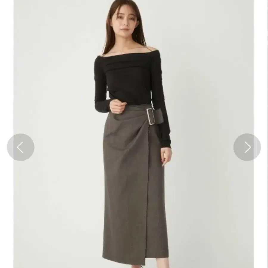 랩 디자인과 스퀘어 버클이 달린 넓은 벨트 디테일로 세련된 여성스러움을 느낄 수 있는 스커트입니다.