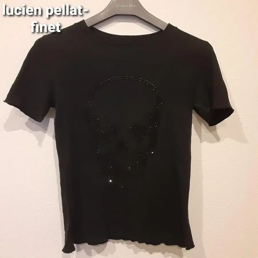 스컬 디자인의 스톤 장식이 특징인 블랙 반팔 티셔츠. - 브랜드: lucien pellat-finet - 색상: 블랙 - 디자인: 스컬 스톤 장식 - 스타일: 반팔 방문해 주셔서 감사합니다. 사이즈 - XS(SS)