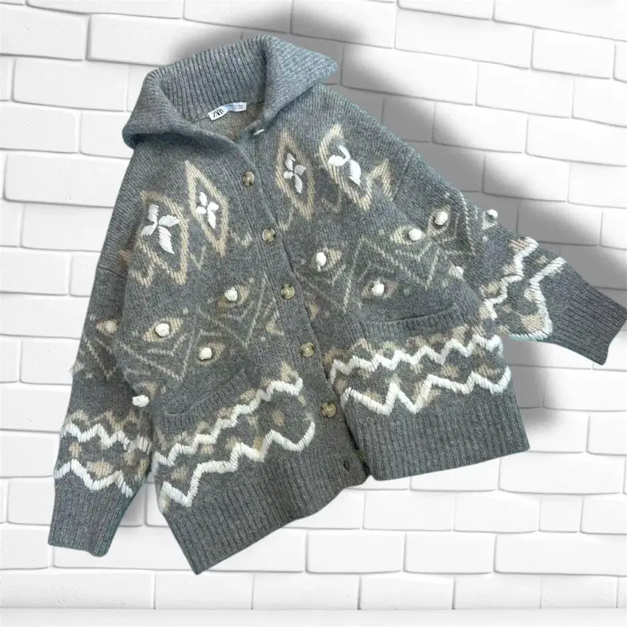 ZARA 자수 니트 가디건 그레이 코트 S