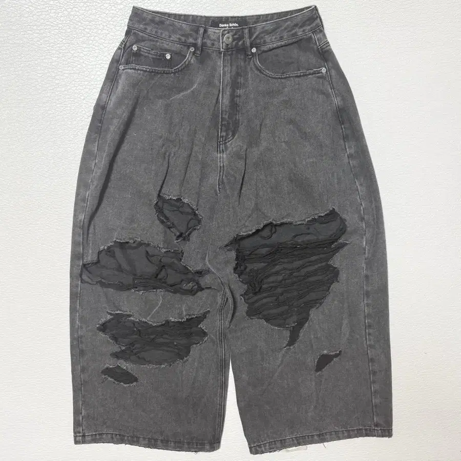 2024 SS 단케셰인 디스트로이 와이드 데님 S 데미지 가공 블랙