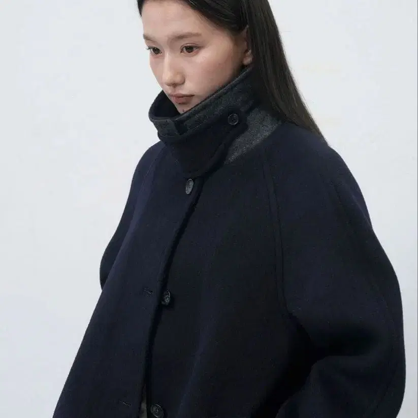 GENERAL IDEA 울 발마칸 하프 코트 네이비