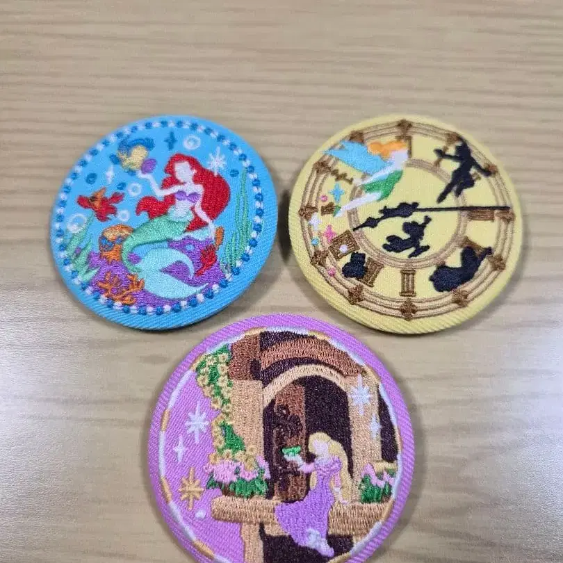 디즈니 자수 배지 3개 세트. 아리엘, 팅커벨, 라푼젤