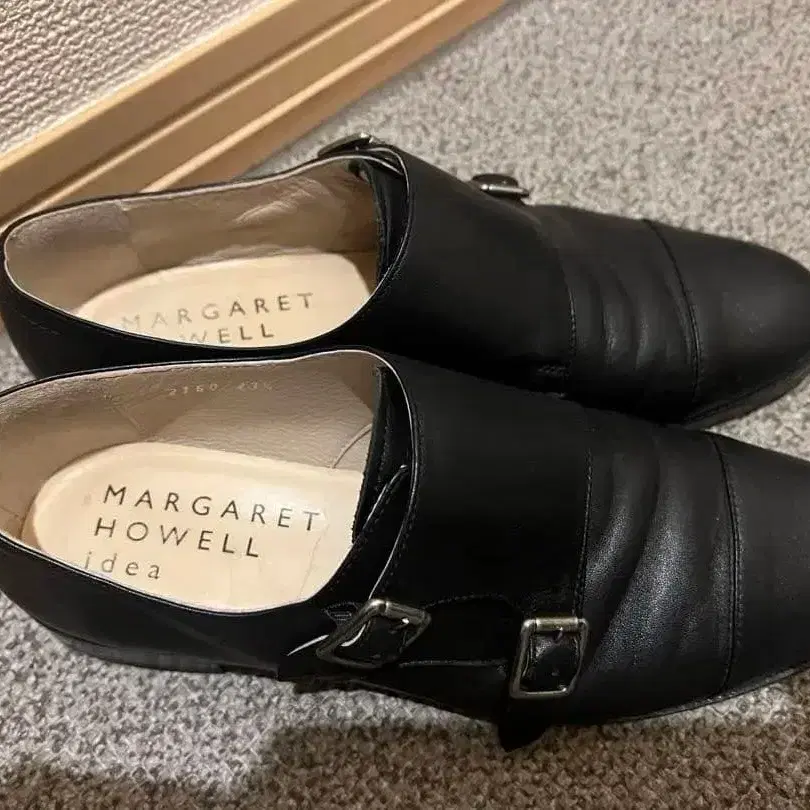 MARGARET HOWELL idea MHL 마가렛호웰 아이디어 더블 몽크 스트랩 슈즈 좌우 신발 모두 왼쪽 부분에 주름이 있습니다. 사이즈 23.5 컬러 블랙 소재 천연 가죽 레더