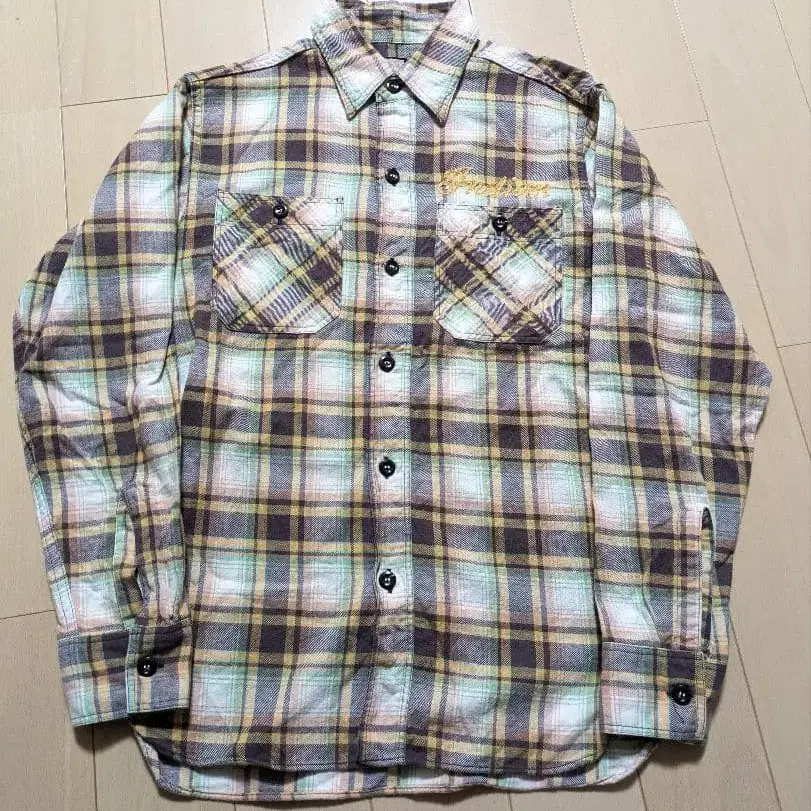 umii908 면 체크 긴팔 셔츠 일본제 45rpm